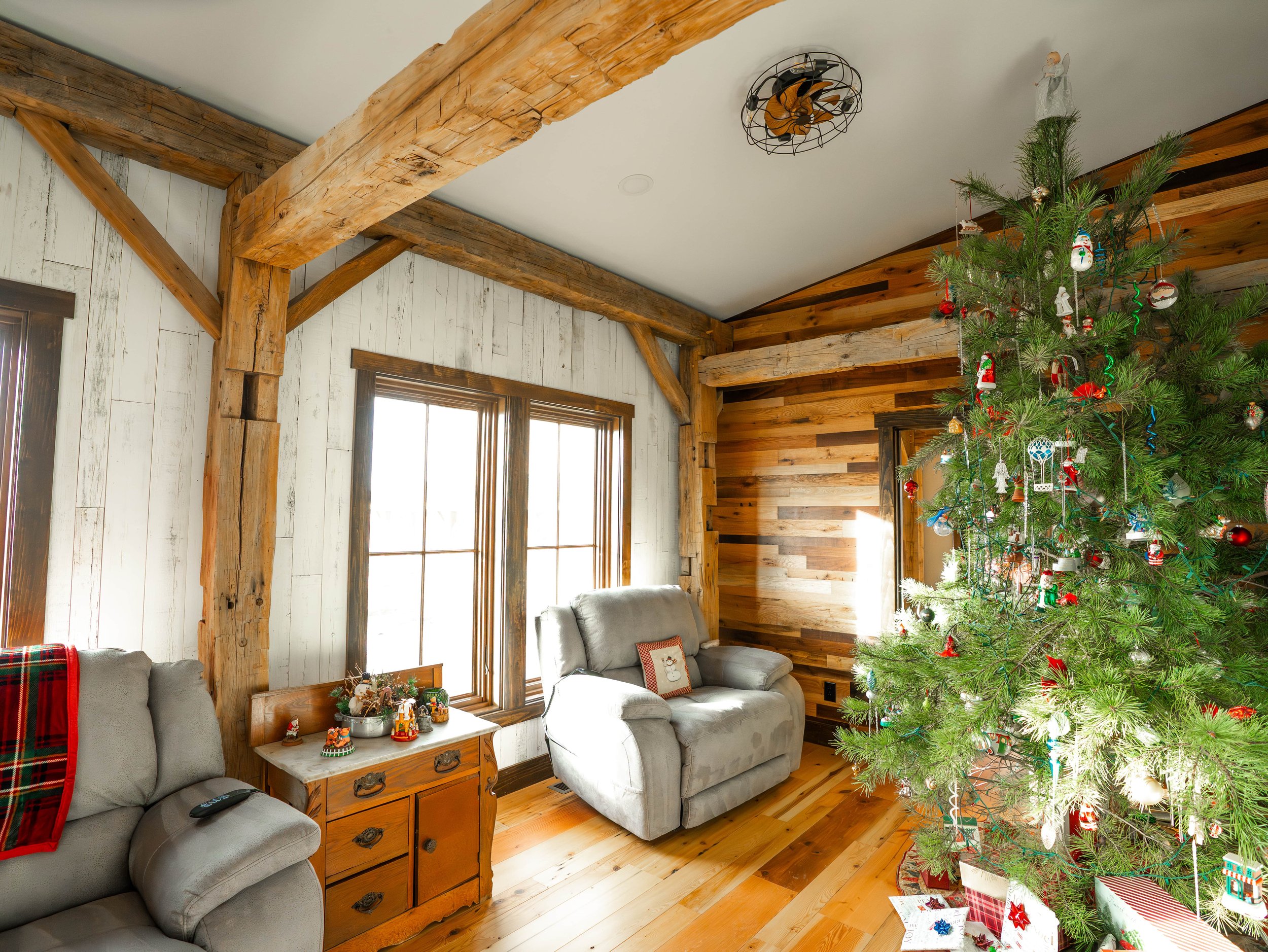 The Phares House frame was raised in October 2024, with construction completed in 2025. It was originally a barn built around the mid-1800s in Hancock County, Indiana. It stood with a 46’x64’ footprint, however we added 16’ of length by building an additional bent out of new hand hewn white oak. It is now a 46’x80’ home in northern Hancock County - just 11 miles from where it stood for over 150 years.