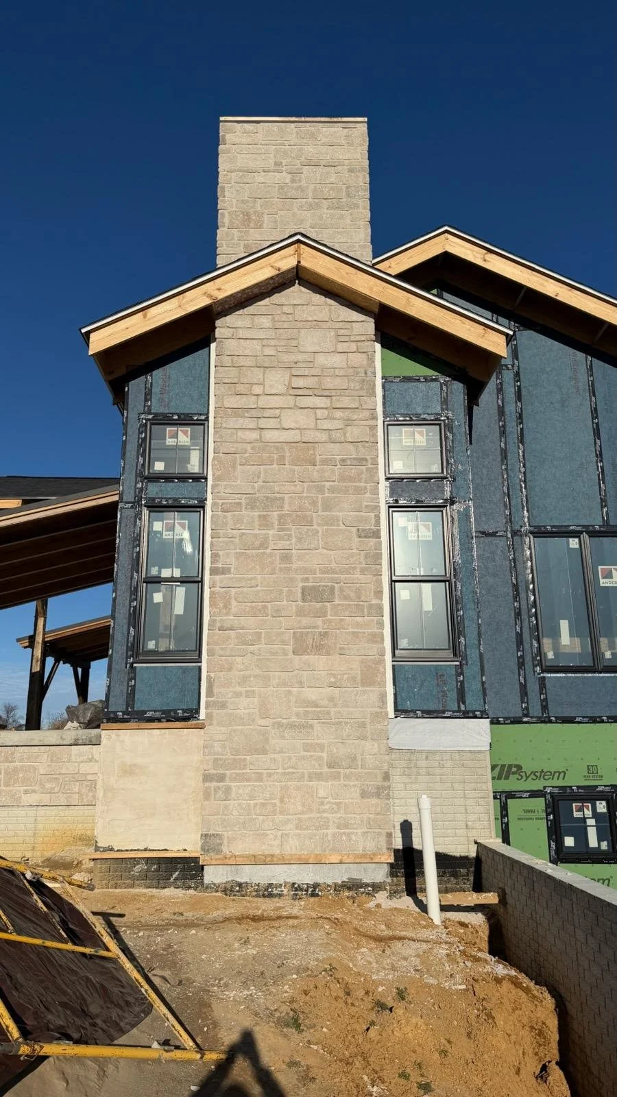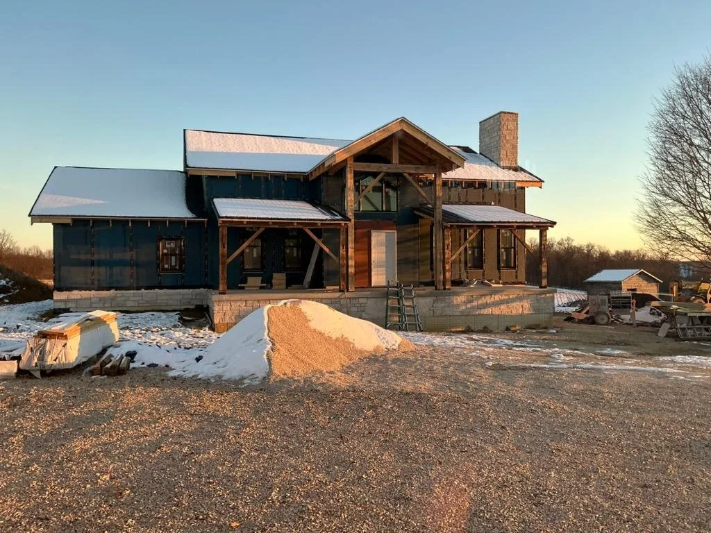 This frame was raised in St. Anthony, Indiana in October 2025. It will be a small part of a much larger home. More pictures to come upon project completion.